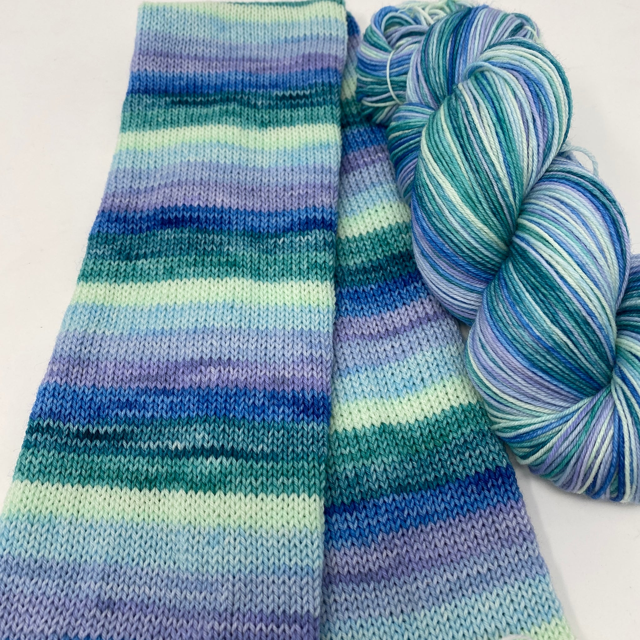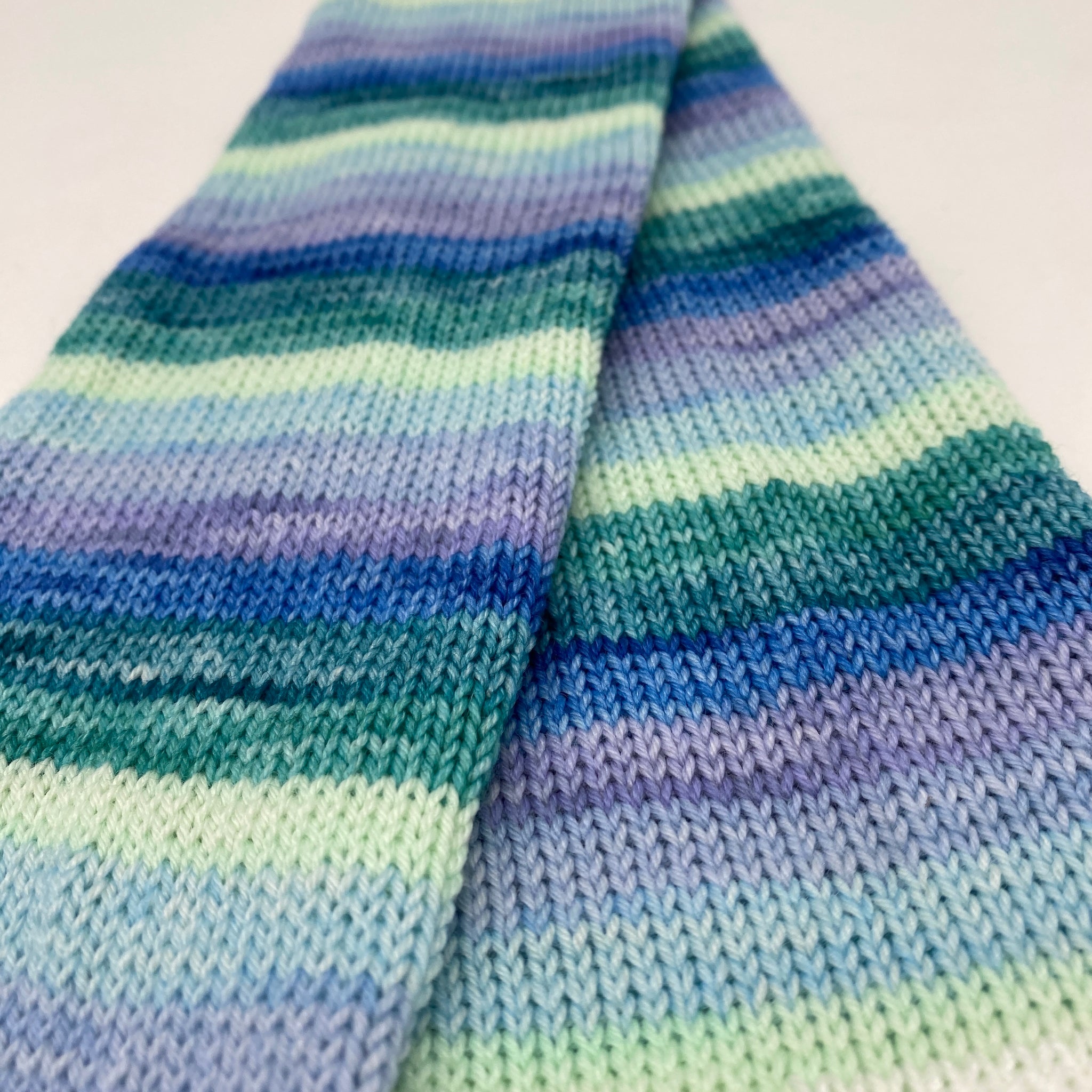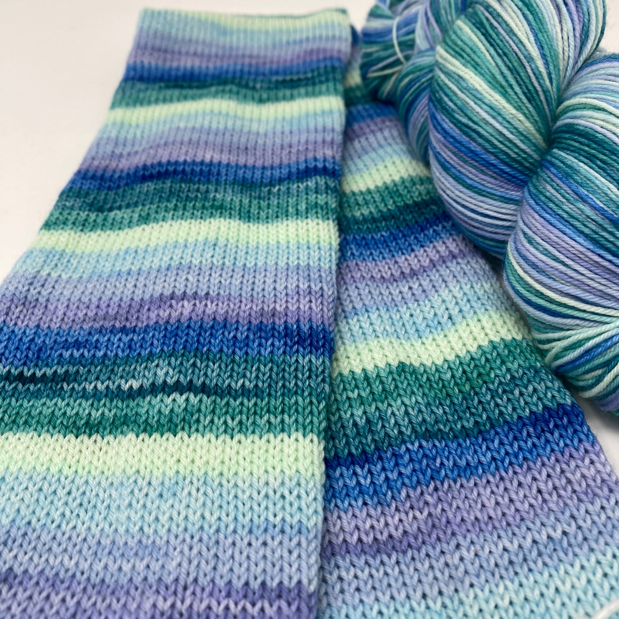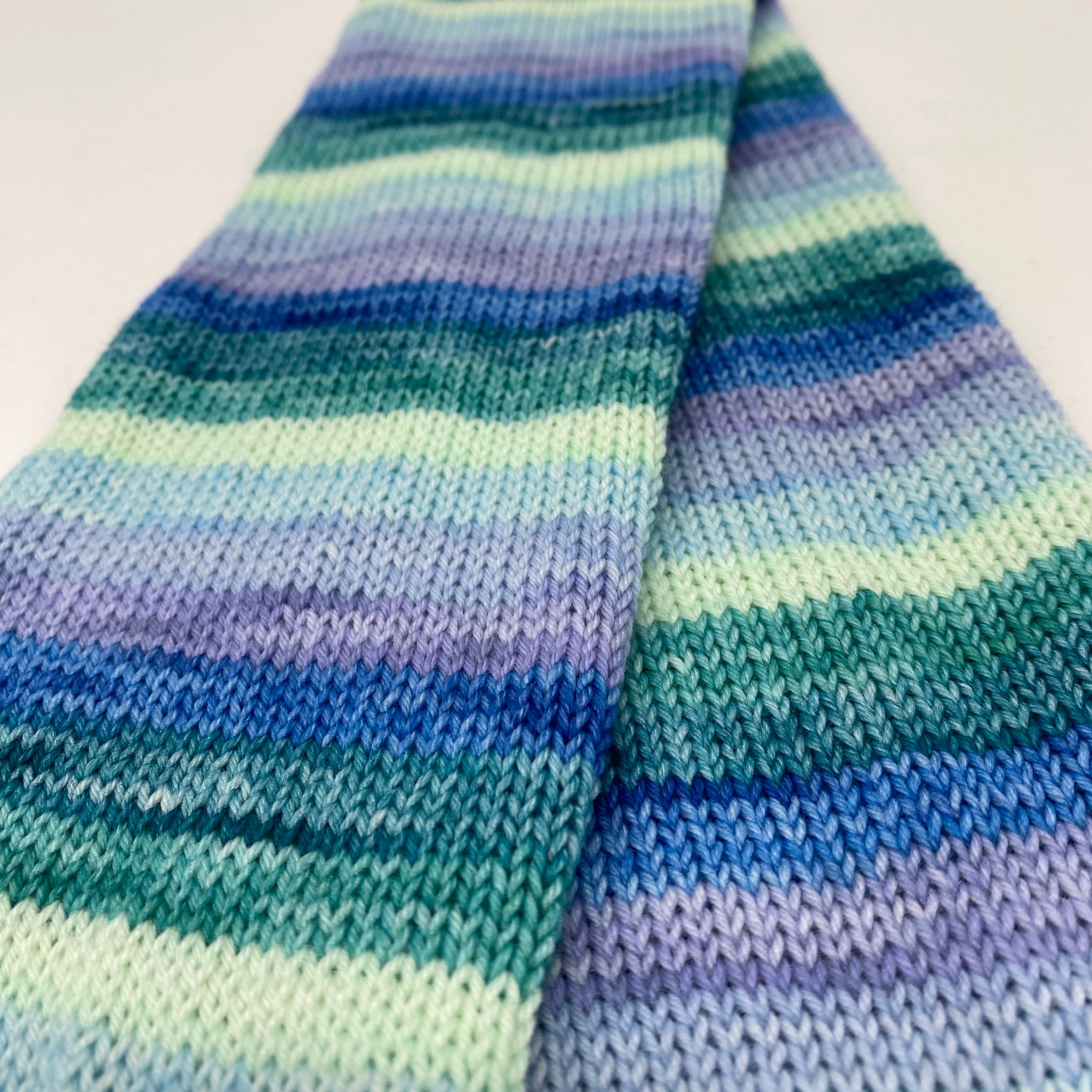 Dyed right in my kitchen for you! A joy to knit with, the yarn does all the stripey work. Made for a knitter, by a knitter.